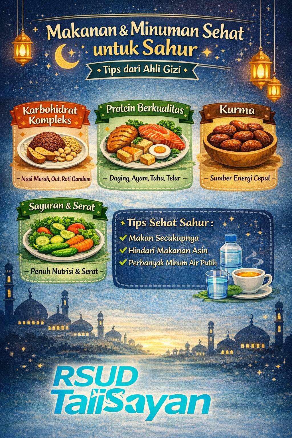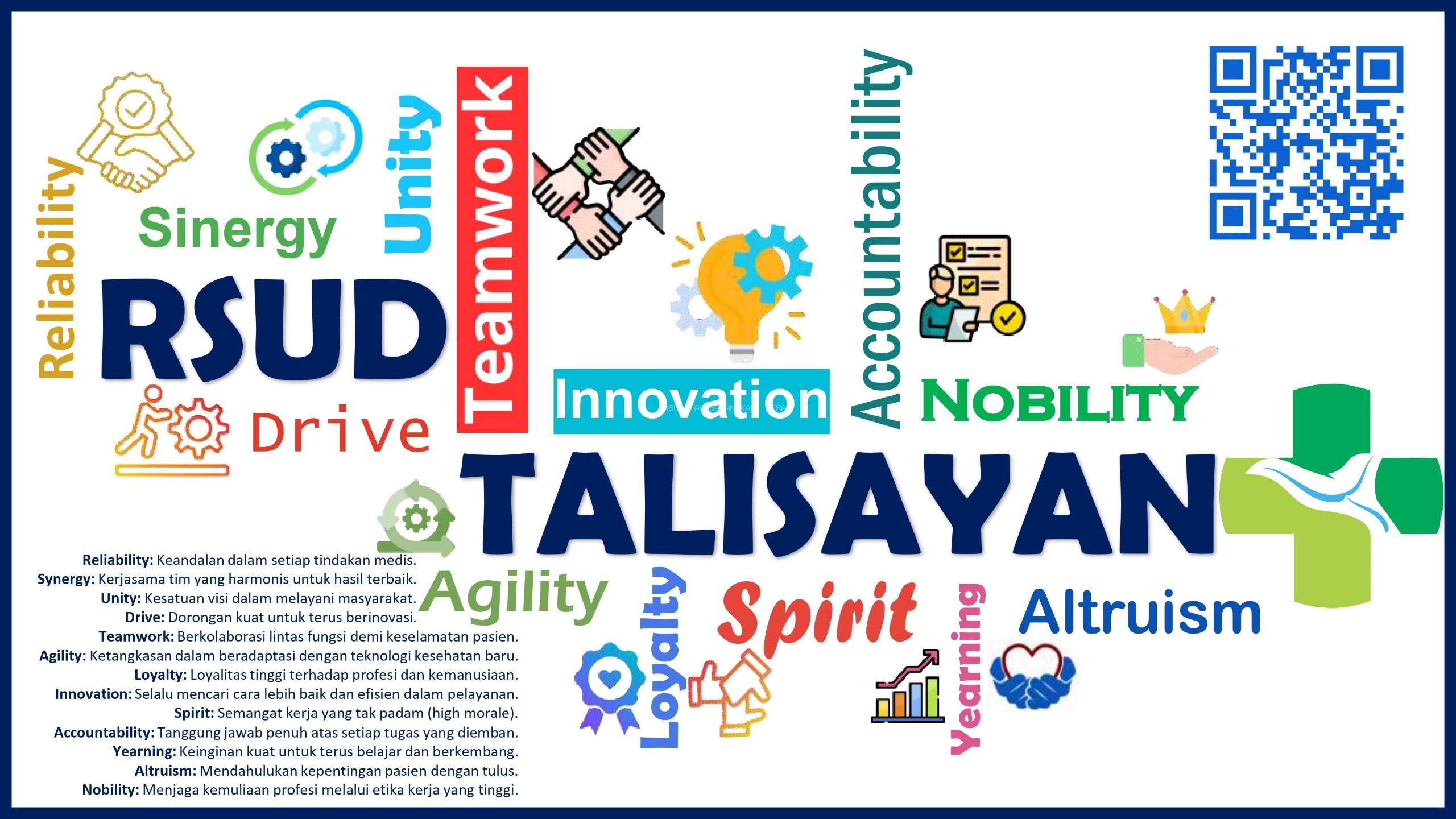 Seluruh jajaran manajemen dan pegawai RSUD Talisayan akan selalu berupaya melaksanakan Visi dan Misi Rumah Sakit. Kesinambungan dan pengembangan rumah sakit akan diupayakan dengan meningkatkan mutu pelayanan, efisiensi dan kerja keras yang bertujuan dalam pencapaian visi dan misi kami. Prima dalam pelayanan dan unggul di bidang penyakit dalam berbasis patient safety. Besar harapan kami RSUD Talisayan dapat memberikan pelayanan prima kepada masyarakat Talisayan dan sekitarnya. Kepuasan pasien adalah komitmen kami dengan motto Pelayanan Lebih Baik.