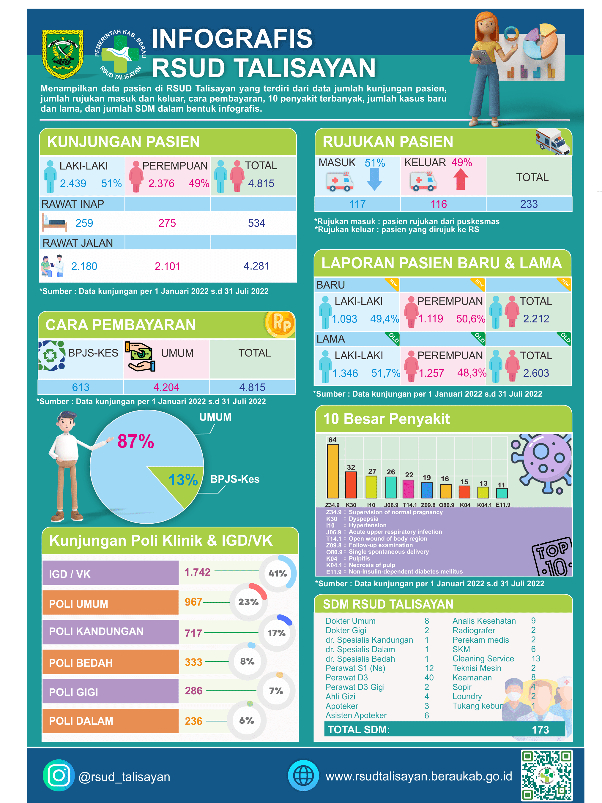 Infografis RSUD Talisayan (Priode : 1 Januari sd 31 Juli 2022)